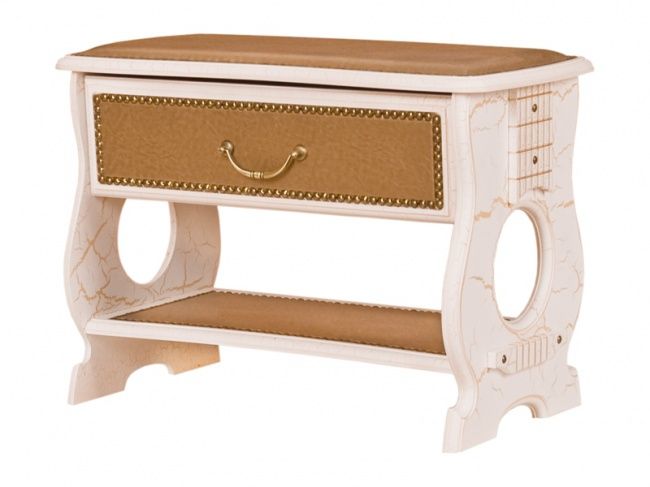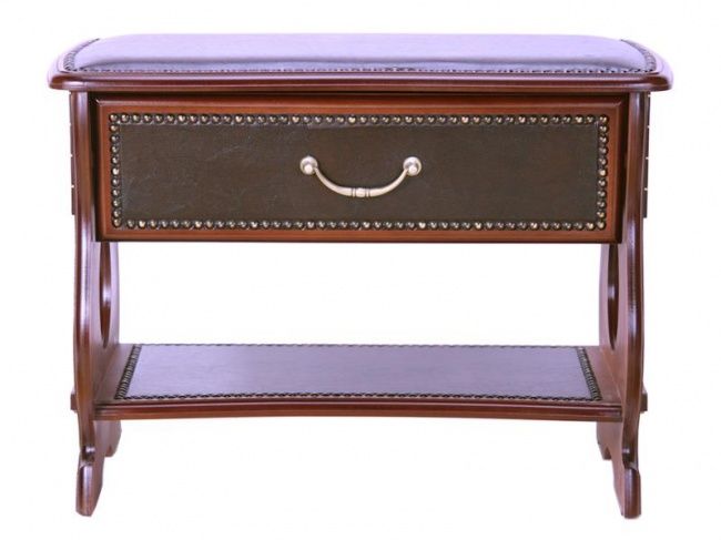 Скамья с верхним выдвижным ящиком и нижней полочкой, отделка экокожа, молдинг.