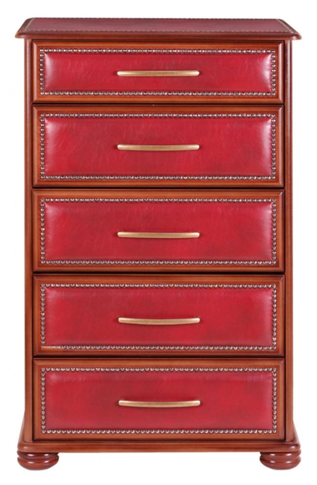 Комод с пятью выдвижными глубокими ящиками. Отделка экокожа, молдинг. Ножки точеный бук, фурнитура компании "BRASS", Испания (латунь).