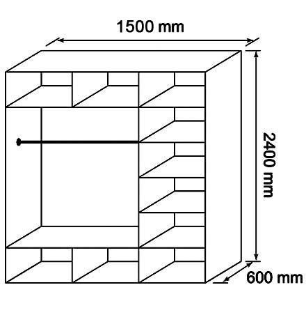 - слева за двумя дверями-купе ниша с антресольной и нижней полками, горизонтальная штанга;